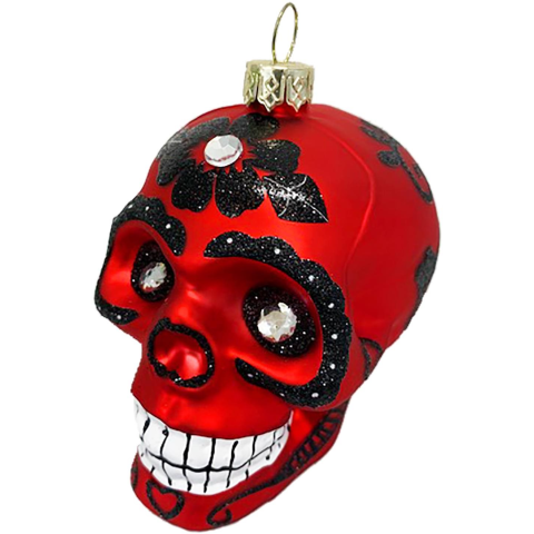 LAALU Dísz koponya dekorációval piros 9 cm (LAU-1416)