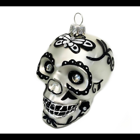 LAALU Dísz koponya fekete dekorációval ezüst 9 cm (LAU-1421) karácsonyi dekoráció árgrafikon