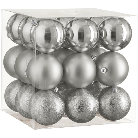 LAALU Díszgömb szett, ezüst árnyalatokban, 8 cm, 27 db (LAU-6232)