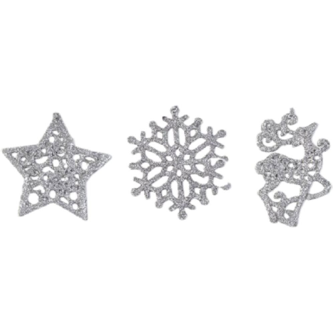 LAALU díszkészlet: ezüst karácsonyi motívumok 10 cm, 3 db (LAU-1877)