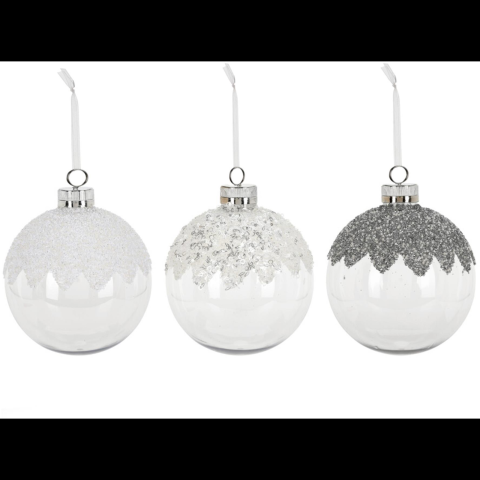 1 kép LAALU díszkészlet: kerek, átlátszó, flitteres díszek 20 cm, 3 db (LAU-1984)