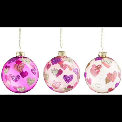 LAALU díszkészlet: kerek rózsaszín díszek szívekkel 8 cm, 12 db (LAU-6180) karácsonyi dekoráció árgrafikon