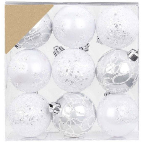 LAALU díszkészlet: vegyes 6 cm, 9 db, fehér (LAU-1980) karácsonyi dekoráció 1 kép