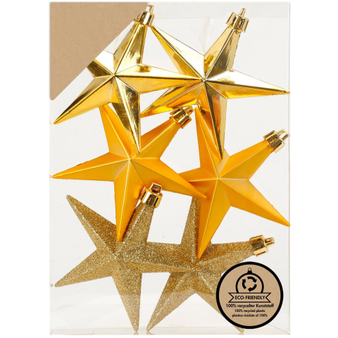 LAALU díszkészlet: vegyes arany csillagok 9 cm, 6 db (LAU-6138) karácsonyi dekoráció árgrafikon