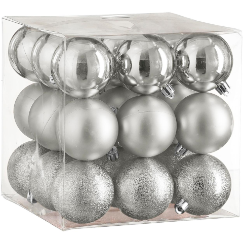 LAALU díszkészlet: vegyes kerek ezüst díszek 6 cm, 27 db (LAU-6229) karácsonyi dekoráció árgrafikon