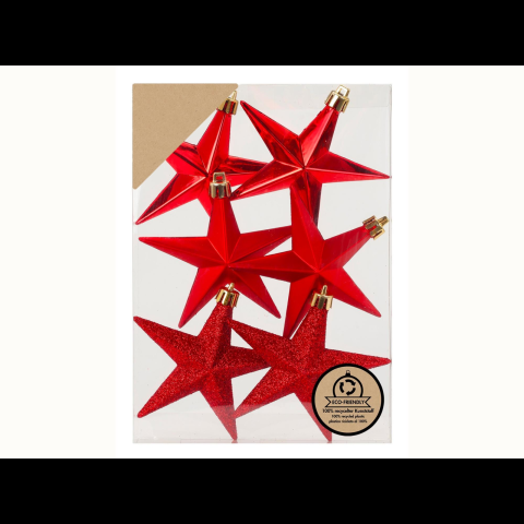 LAALU díszkészlet: vegyes piros csillagok 9 cm, 6 db (LAU-6139)