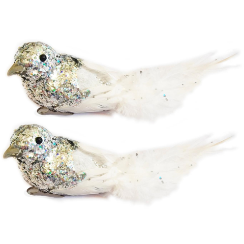 LAALU Madár ezüst csillámokkal 13 cm, 2 db (LAU-6171) party kellék 1 kép