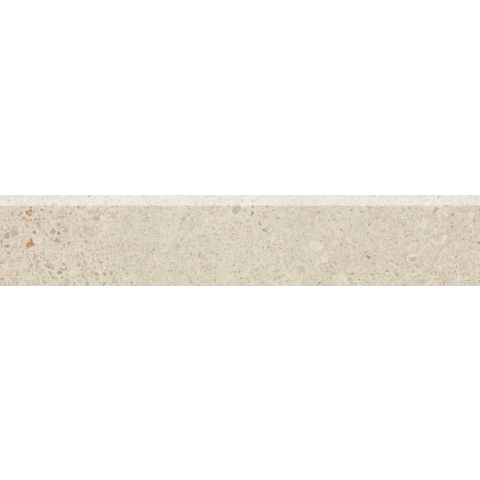 Fagyállló. Lábazat bézs színben terrazzo kivitelben mérete 44,8X8,5 cm vastagsága 8 mm matt felülettel. Beltérbe és kültérbe is alkalmas. Nagy eltérésekkel a színárnyalatban, a felületi textúrában és a rajzban.