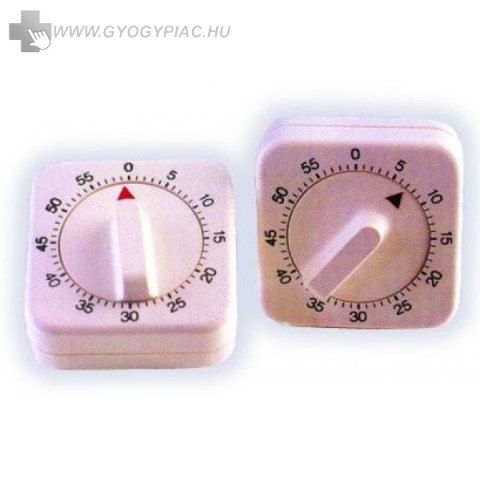 60 perces. 1 percenkénti skálázással. Az idő leteltekor (0 perc) az óra riaszt. A tekerő segítségével be kell állítani, hogy az óra hány perc elteltével riasszon. Az óra visszaszámlálását halk kattogás jelzi. Az óra színe: fehér, anyaga: műanyag. .