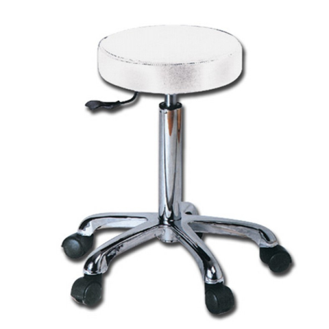 Termék jellemzői: - króm vázszerkezet - görgős, - gázrugós, - bélelt műbőr ülés - Ø 33 cm - Állítható magasság: 53-68 - Szín: fehér - terhelhetőség 170kg - dobozolt méret 480x220x480mm - nettó súlyt 6Kg Termék jellemzői: - króm vázszerkezet - görgős