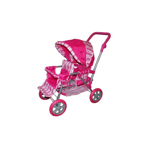 Lábtartós és kosaras iker babakocsi - rózsaszín játék babakocsi 1 kép
