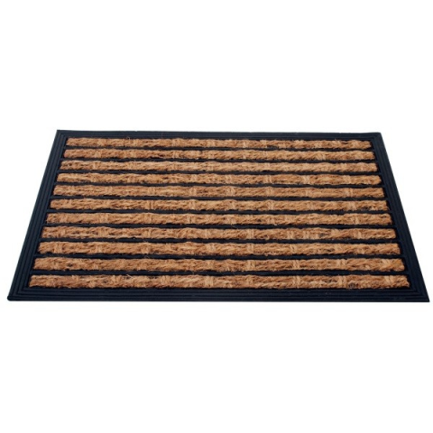 Erős gumi lábtörlő, kókuszrost berakással, ami hatékony szennyeződés eltávolítást tesz lehetővé a cipő talpáról.