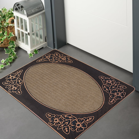 Teljes Lábtörlő Star Bronz Ovál virág mintás Bézs gumis 45x75cm termékleírás