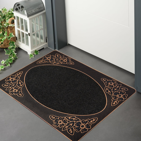 Teljes Lábtörlő Star Bronz Ovál virág mintás fekete gumis 45x75cm termékleírás