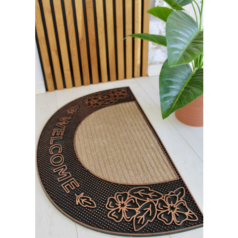 Teljes Lábtörlő Welcome Félkör Bronz virágos gumis 45x75cm termékleírás