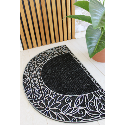 1 kép Lábtörlő Welcome Félkör Szürke margaréta gumis 45x75cm
