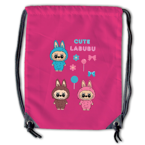 Vidám, Labubu mintás tornazsák strapabíró anyagból. Könnyű, praktikus, ideális ovisoknak és iskolásoknak mindennapi használatra.