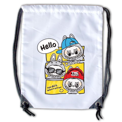 Vidám, Labubu mintás tornazsák strapabíró anyagból. Könnyű, praktikus, ideális ovisoknak és iskolásoknak mindennapi használatra.