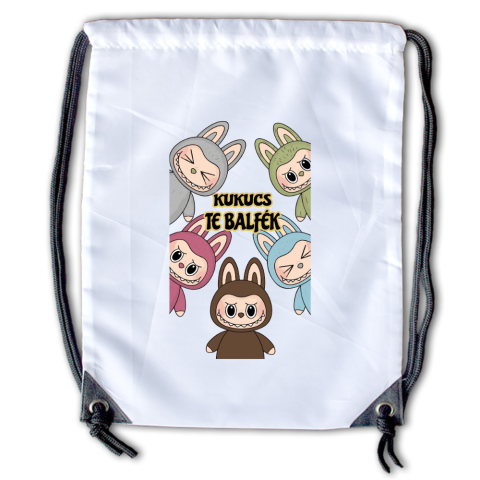 Vidám, Labubu mintás tornazsák strapabíró anyagból. Könnyű, praktikus, ideális ovisoknak és iskolásoknak mindennapi használatra.
