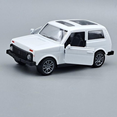 Lada Níva hang és fény játékautó fehér makett 1 kép