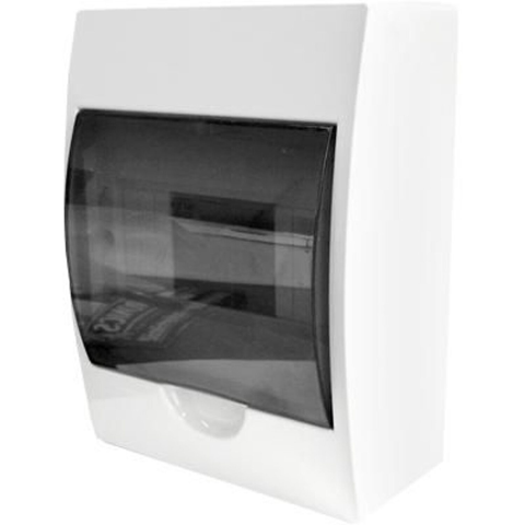 Falon kívüli lakáselosztó, átlátszó ajtóval.