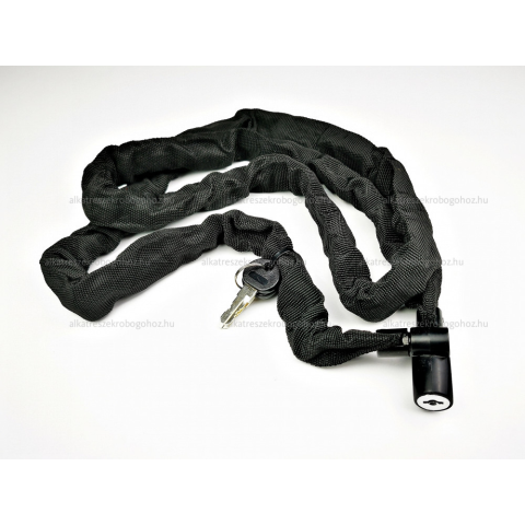 Tartós védelem acélláncból, lánchossz 1400 mm, strapabíró és erős lánc szövet huzatban, két kulccsal