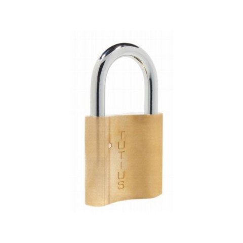 Elzett 2048 Tutius lakat. Sárgaréz kivitel. Méretek: 35, 45 és 55 mm. Mérettõl függõen 2 vagy 3 db kulccsal. Csapos rendszerû, 5 zárócsappal, 45-ös méretben hosszított kengyel