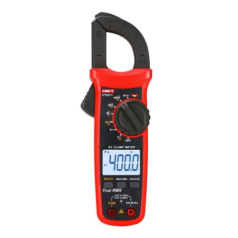 UNI-T UT201+ digitális lakatfogó MÉRÉSI TARTOMÁNYOK: DC feszültség: 600V ± (0,5% + 2) AC feszültség: 600V ± (0,8% + 5) AC áram: 400 A ± (2% + 10) Ellenállás: 40 MOhm ± (0,8% + 2) Diódák tesztelése Folytonosság ellenőrzése TOVÁBBI FUNKCIÓK A mérési int