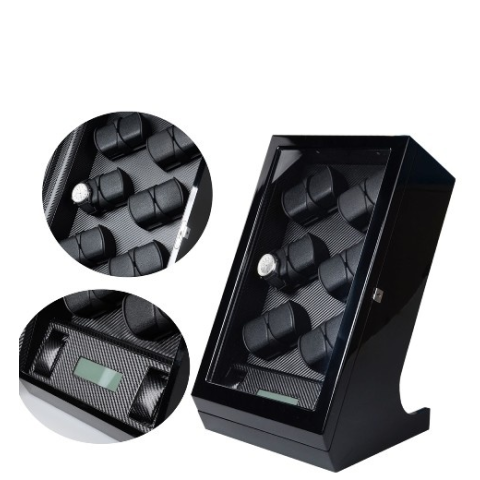 Több rétegben lakkozott fekete színű, fából készült óraforgató 12 órához. Kialakításának köszönhetően nagy méretű óráknak is megfelel! Belseje fekete színű! Az LCD kijelző mellett további 2 db óra tárolására van lehetőség! A forgatófejek külön-külön progr
