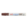 Lakkmarker UNI PX-20 2,2 - 2,8mm barna Az UNI PAINT MARKER legmagasabb igényeket kielégítő, nagy fedőképességű lakkfilc. Ipari jelölő funkciókra és kreatív területekre is ajánlott. Selymen, szöveten a festék oldószere nem hagy nyomot! Alumínium tollszá