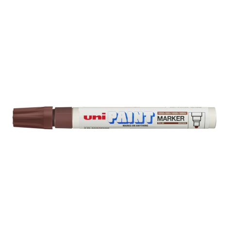Lakkmarker UNI PX-20 2,2 - 2,8mm barna Az UNI PAINT MARKER legmagasabb igényeket kielégítő, nagy fedőképességű lakkfilc. Ipari jelölő funkciókra és kreatív területekre is ajánlott. Selymen, szöveten a festék oldószere nem hagy nyomot! Alumínium tollszá