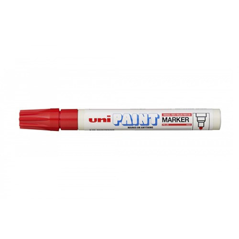 Lakkmarker UNI PX-20 2,2 - 2,8mm piros Az UNI PAINT MARKER legmagasabb igényeket kielégítő, nagy fedőképességű lakkfilc. Ipari jelölő funkciókra és kreatív területekre is ajánlott. Selymen, szöveten a festék oldószere nem hagy nyomot! Alumínium tollszá