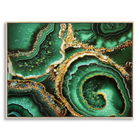 Zöld Málaágitású Falikép Arany Kerettel - Elegáns Díszítőelem a Házadba ✨ Ez a gyönyörű falikép egyedi megjelenést kölcsönöz otthonodnak. A smaragdzöld és arany kombinációja luxus érzetet kelt, miközben a természet ihlette minta frissességet visz a t...