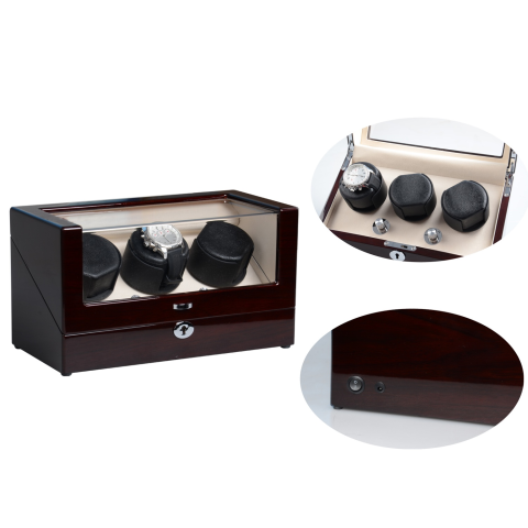 Részletes bemutató videó: Több rétegben lakkozott mahagóni színű, fából készült óraforgató 3 órához. Kialakításának köszönhetően nagy méretű óráknak is megfelel. Belseje törtfehér színű. A termék hálózatról és elemről egyaránt üzemel. Zárható, kulcs