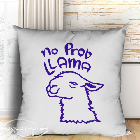No Prob Llama párna, vicces ajándék. Nincs probléma, ha van egy láma. Praktikus és humoros ajándék, mindenkinek aki kedveli a humoros párnákat vagy a Llamat. A párna többféle színű és mintájú hátoldallal kérhető. A párna mérete 40x40 cm, a huzat prakti