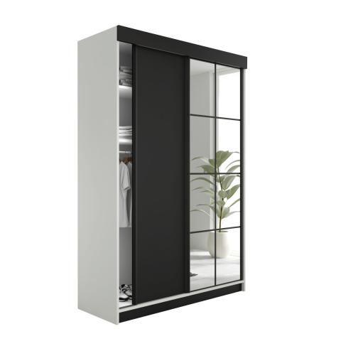 Teljes Lamaro Tolóajtós Szekrény tükörrel 138x205cm - fehér és fekete termékleírás