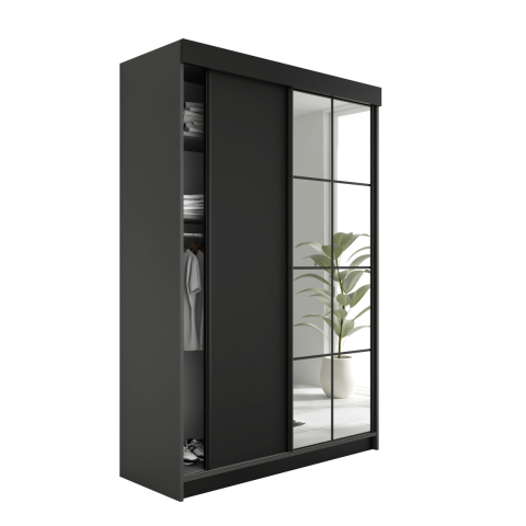 Teljes Lamaro Tolóajtós Szekrény tükörrel 138x205cm - grafit & fekete termékleírás