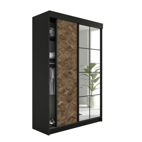 Teljes Lamaro Tolóajtós Szekrény tükörrel 167x205cm - fekete & ArtDeco termékleírás