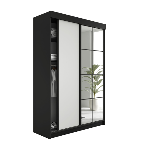 Teljes Lamaro Tolóajtós Szekrény tükörrel 167x205cm - fekete & fehér termékleírás