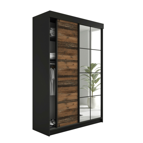 Teljes Lamaro Tolóajtós Szekrény tükörrel 167x205cm - fekete & OldStyle termékleírás
