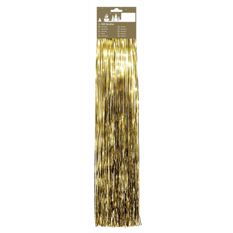 Az aranyszínű lametta függöny 300 darab egyenes csíkot tartalmaz, amelyek hossza egyenként 50 cm. Az arany színben csillogó lametta függöny sokféleképpen használható beltéri dekorációként a karácsonyi időszakban. Varázsolja szebbé otthonát, hogy a karácsonyfa ragyogó gyöngyszemként hasson.