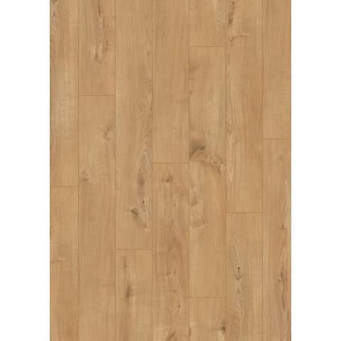 Laminált padló tölgyfa dekorációval, 128,8x19,5 cm méretben, kattintásos beépítési rendszerrel.