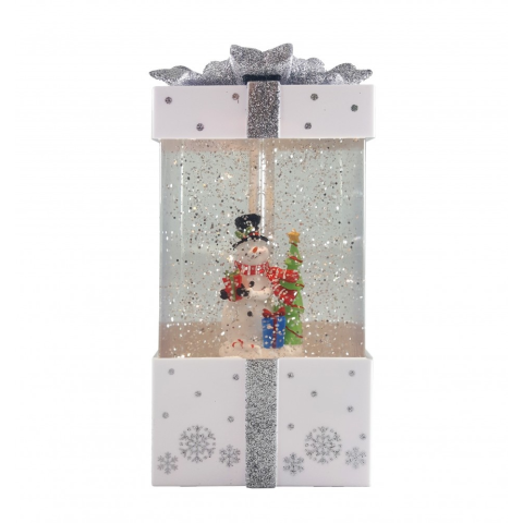 Mérete: 10cm 2 féle Karácsonyi Lámpás ajándékdoboz, csillámokkal hóemberrel vagy házikóval.