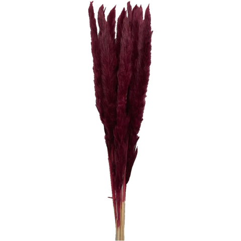 A lámpatisztító fűcsomó élénk bordóvörös színben adja meg koszorúinak és virágdíszeinek a befejező simítást és az összetéveszthetetlen egyéni jelleget. Az 58 cm hosszú stílusos lámpatisztító fűcsokor önmagában, például egy magas vázában is mindenki tekintetét magára vonzza. A csokor valódi szárított, festett és előkészített lámpatisztító fűből készült.