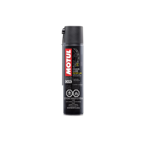 Robogó lánckenő olaj Motul C4 Factory Line spray 400mlFehér, nagy teljesítményű lánckenő spray minden motorkerékpár lánc számára (O-gyűrűs, X-gyűrűs vagy Z-gyűrűs). Kifejezetten aszfaltversenyekhez (pályaverseny, állóképességi verseny stb.) fejlesztették