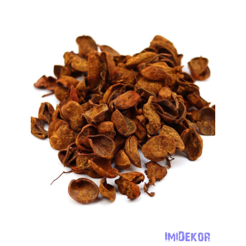 Egy csomag tartalma kb 16dkg/csomag, a képen látható mennyiség. Természetes dekoráció lévén a darabok változó méretűek, a csomagban kisebbek és nagyobbak is előfordulnak. A szárított termés festése nem mindig egyenletes.