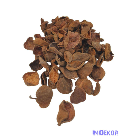Egy csomag tartalma kb 22dkg/csomag, a képen látható mennyiség. Természetes dekoráció lévén a darabok változó méretűek, a csomagban kisebbek és nagyobbak is előfordulnak. A szárított termés festése nem mindig egyenletes.