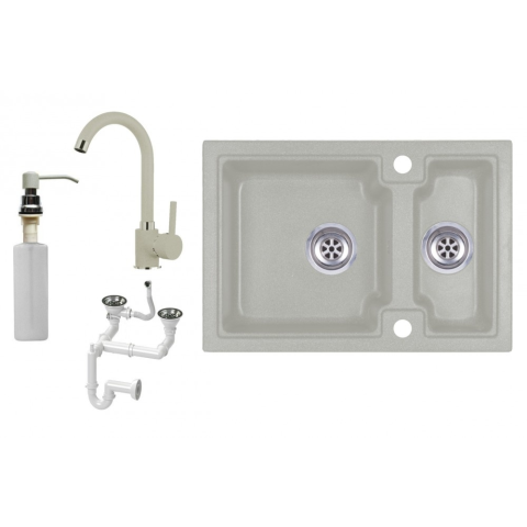 Boston S63-43B gránit mosogató szett bézs színben. Teljes készlet, ami tartalmazza a szifont, mosogatószer adagolót és a csaptelepet. Méreténél fogva ideális lehet olyan konyhákba, ahol az okos helykihasználás és a helytakarékosság alapvető követelmény, v