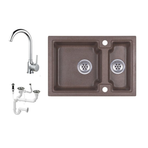 Laneo Boston S63-43BR Gránit Mosogató + Csap + Dugóemelő (barna)
