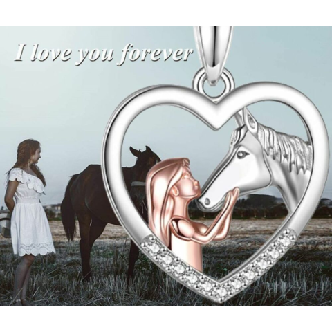 Lány és ló a szívben nyaklánc